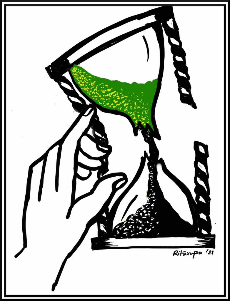 Editor’s note: Joy felt the need to speak to time, as if it has been a dear friend to him since long. Words did come out in the form of a letter and yet it found a complementary gift in Riturupa’s illustration. Thus a collaboration happened to add some flesh and blood to an abstract expression.