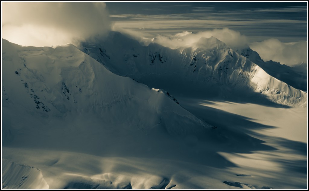 This series of photos features the massive ice-fields of the St. Elias Mountains of the national park. Being extremely remote and subjected to hazardous mountain weather, only a select few dare to hike to these ice-fields by foot. We took the easier route of flying over these mountain ranges in a four person prop plane and tried to capture the moments for memories to take home. This is an experience of a lifetime.
