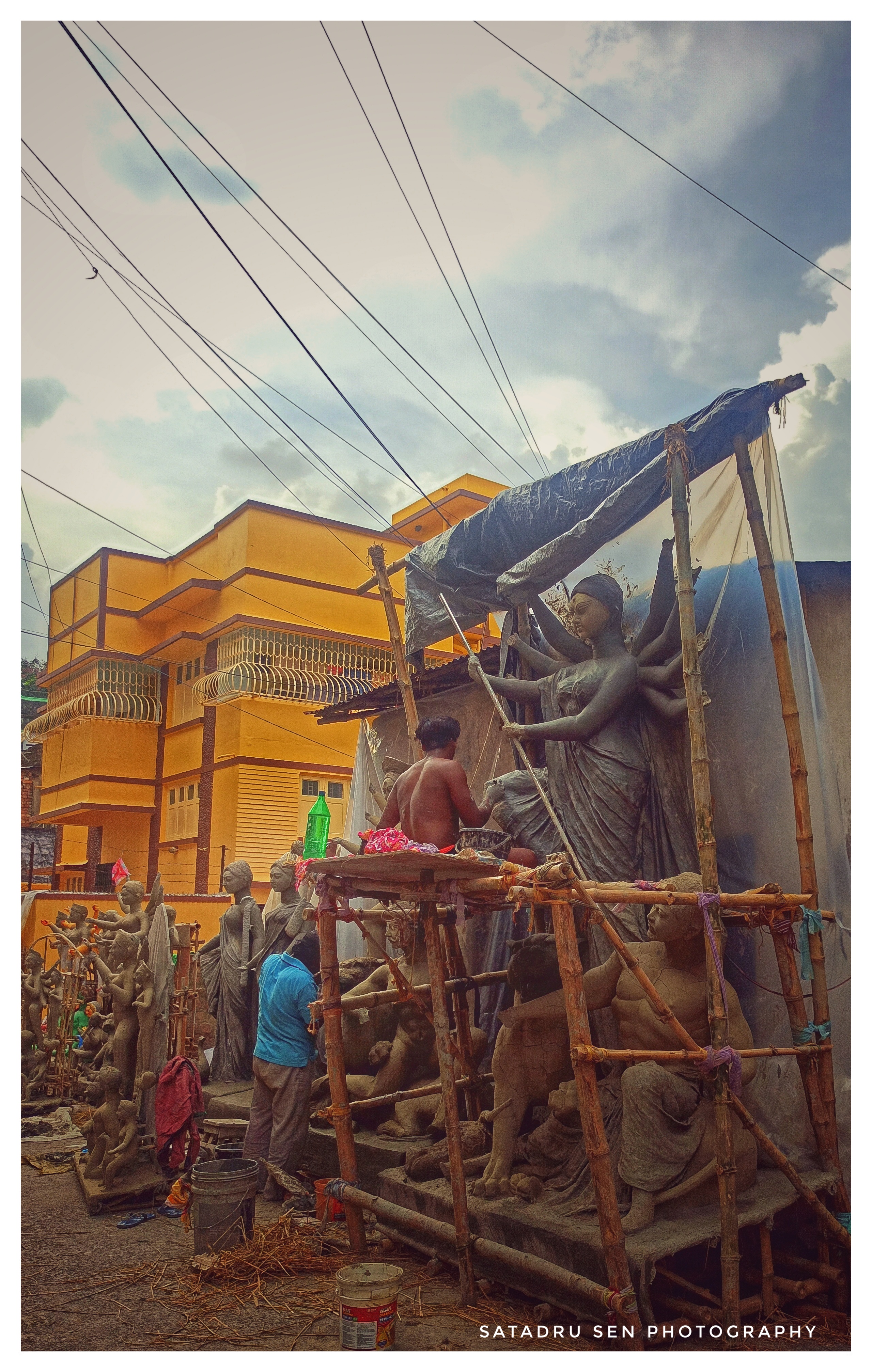 Photographer’s Note: Durga Puja is undoubtedly the grandest festival for the Bengali people. It’s a season of forgetting all woes and coming together to celebrate the homecoming of the Goddess of power. The preparations have many stages, one being the making of the idol by master craftsmen. The photographer catches the glimpses of those in some of these frames that will lead up to the grandeur of light, colour and pomp.