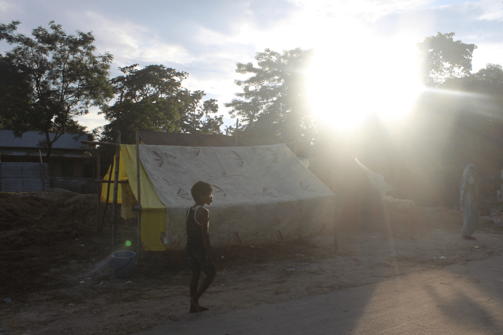 The char-dwelling communities have devised their own infrastructure to withstand the flood devastations. The people have constructed temporary makeshift tents, built on higher grounds, which they use as their homes during the months when flood hits. They have even built separate tents for their livestock.