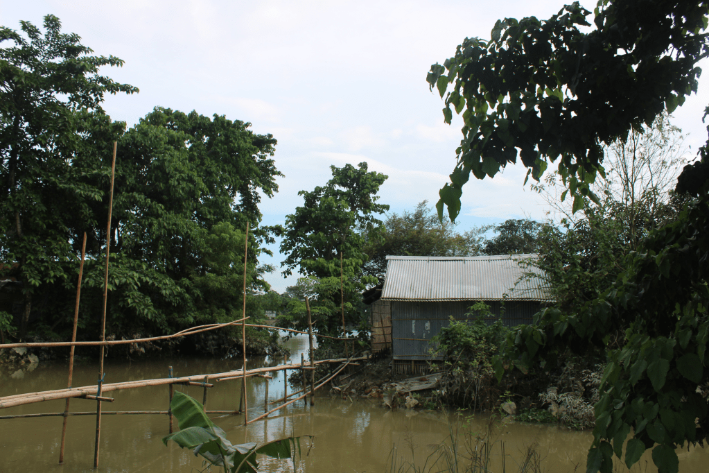 The instability brought by the river to the people’s lives in the char regions have forced them to adjust accordingly and device ways to suit the flood-prone region’s geography. This can be witnessed where the river bank, called ‘mathauri’ in vernacular, was damaged by steady erosion which was a constant feature of the river’s shoreline during the monsoon season. There was widespread erosion by the river, which in turn effects the location of these char areas, making people to re-adjust their livelihood choices and transport modes. Bamboo sticks are used as bridges and boats are used as primary mode of transport to move across the temporarily flooded geographies.