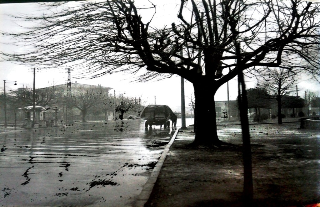 There is a picture of an overloaded horse carriage outside Porta San Pietro along Viale San Concordio on a rainy day in 1948, three years after the war. Barely visible is the image of a man walking in front of his carriage alongside the horse, holding an umbrella, all his belongings, all that is dear to him is behind him on the carriage. Looking at this particular photograph we experience the real texture of time. Time compels us to move on, further on; for the moment will arrive when you must part from a certain place forever and there is no turning back. Listen to the voice of the Palestinian poet Mahmoud Darwish: