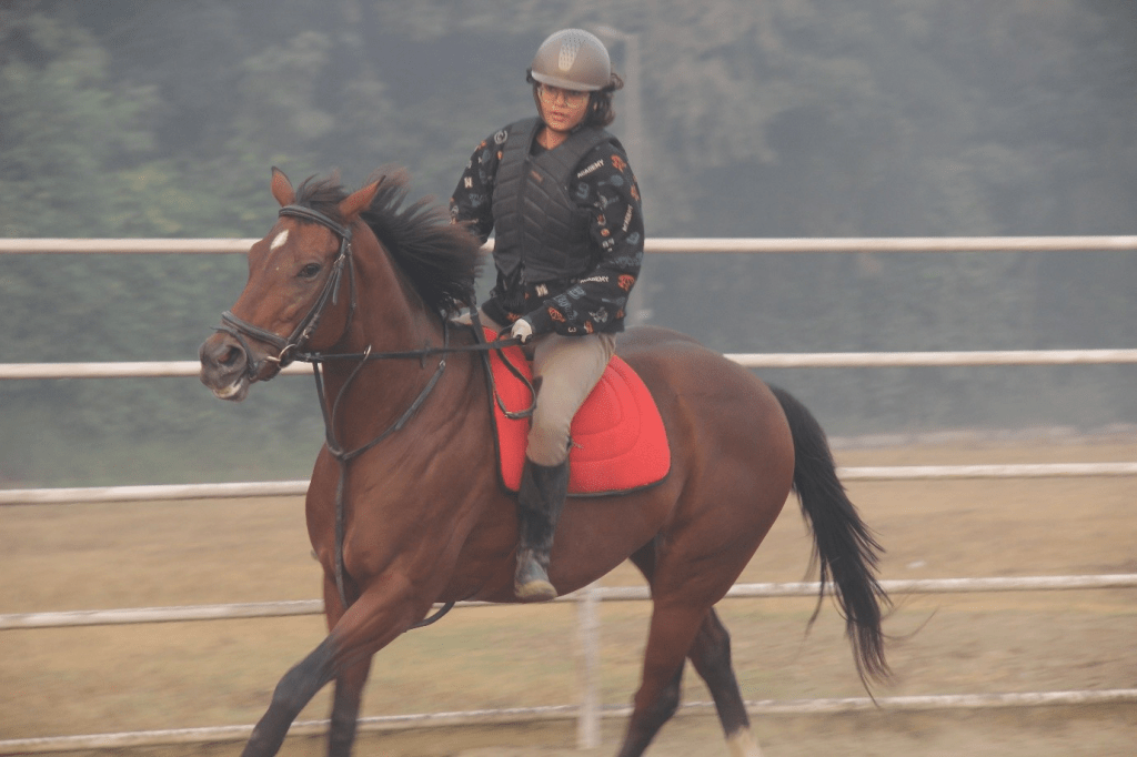 The rider gently places a hand on the horse’s side, walking alongside it with calm intent. There is a quiet understanding between them, a mutual trust that prepares them for the journey ahead. This image symbolises connection—before the ride, there’s a moment of calm and respect. It’s a reminder that true partnership begins with trust, where both the rider and the horse are ready to face what lies ahead, together.