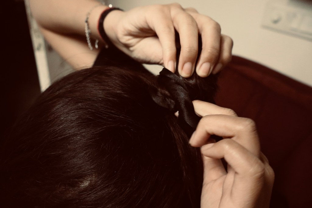 This is one of those small moments many students recognise — the quiet pause before they begin. She gathers her hair into place, a gesture that helps her settle into the mindset of studying. The fingers putting the hair into place mirror the way she tries to put herself into place, signalling the start of her effort. It is a brief ritual of order and readiness, a way of preparing for the work/study that will follow.