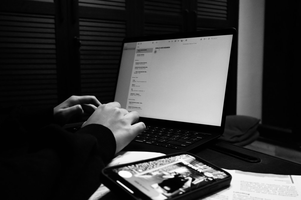 everything happening outside her study space. Each alert pulls her attention a little further away from the page, even when she tries to stay focused. The work remains open in front of her, but the rhythm she had just found slips again. In this moment, the distraction isn’t dramatic; it’s just steady enough to redirect her mind. Just after the phone call ends, the notifications begin—each one arriving like a reminder of how easily focus can slip. What should have been a return to studying becomes another moment pulled away, another distraction that grows larger than it should- putting her studies out of focus.