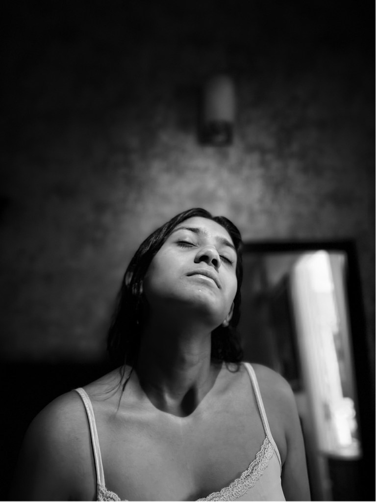 A calm light rests on her face, offering a brief escape from the noise of expectations. In this moment, she imagines a version of herself untouched by deadlines and comparisons—a quieter inner world she longs to inhabit. The image symbolizes her subconscious desire for peace, a place she visits only when her mind drifts away from the pressure.
