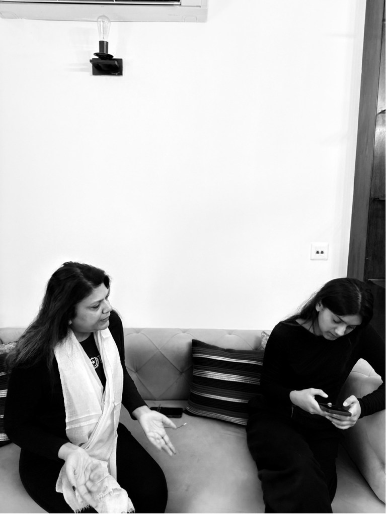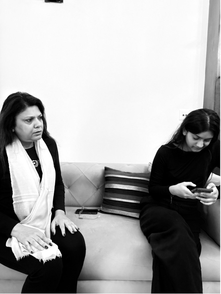 Her mother’s frustration enters the frame—a familiar lecture shaped by worry and repeated reminders. The scolding is not anger, but fear wrapped in parental concern. Yet the subject’s posture shows distance; she absorbs the words without fully listening. The tension between them reflects two people carrying the same pressure in different ways.