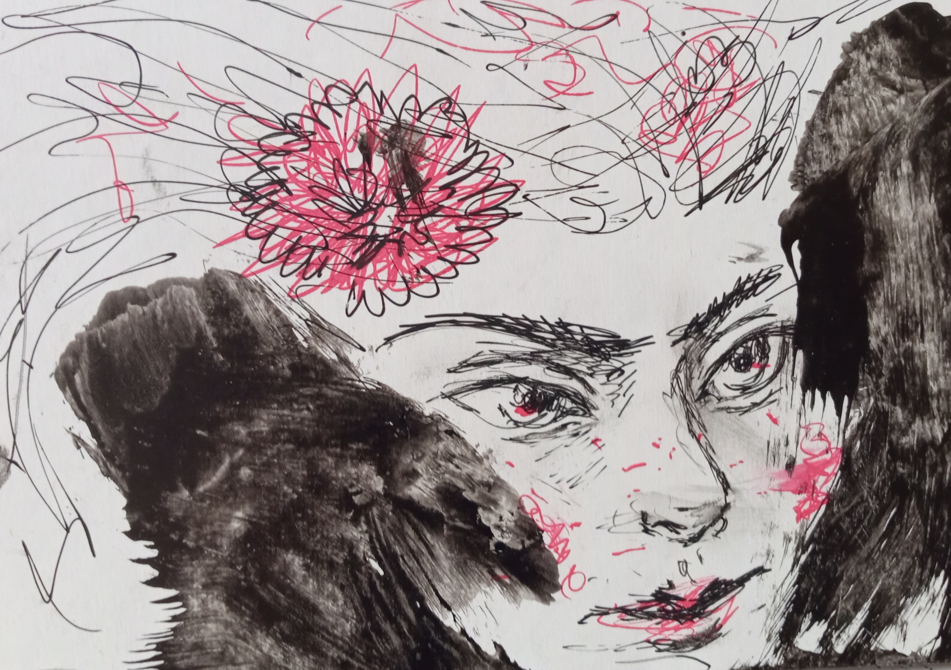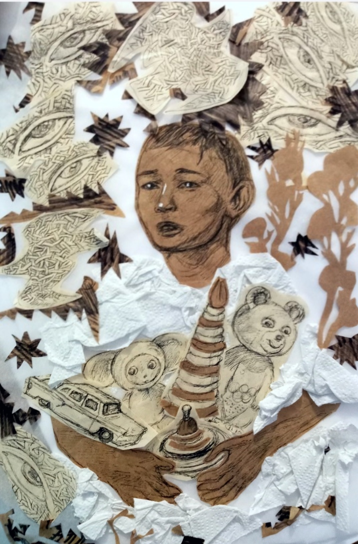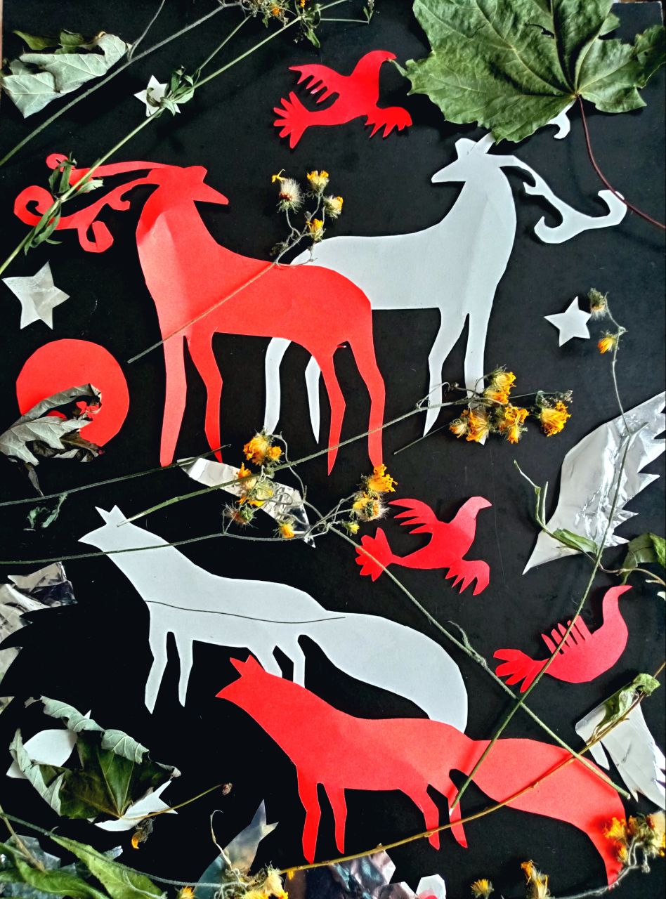 Editor’s Note: These works unfold like fragments of a shared dreamscape—where red pulses as memory, alarm, and desire against fields of black and white silence. Paper-cut animals and birds hover between innocence and omen, while human faces emerge and dissolve, scarred by gesture and shadow. Organic elements—leaves, flowers, torn foil—anchor the compositions in the physical world, even as the figures drift toward myth. Together, the artworks speak of vulnerability and resilience, of bodies and spirits caught between flight and fracture, suggesting a quiet struggle to remain visible, alive, and whole within chaos.