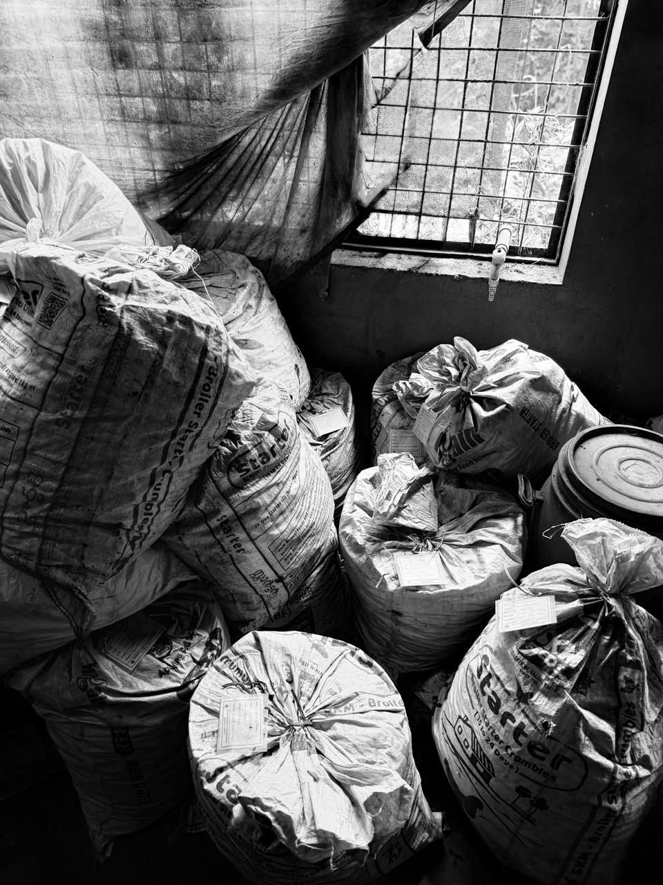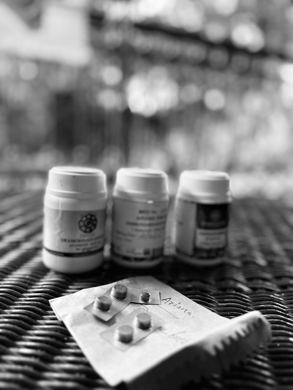 During a recent trip to Kerala, I spent nine days at an Ayurvedic ashram undergoing detoxification and therapeutic treatment. Each day followed a disciplined routine: two hours of therapy sessions and five doses of herbal medicines prescribed by the resident doctor. As part of the programme, we were also taken on a guided visit to the ashram’s medicine factory, where the entire production process was demonstrated—from the sourcing of raw herbs to the final packaged tablets ready for consumption. During the factory visit, I began photographing the stages of production to document the journey of a single tablet, tracing its path from origin to end use. The series opens with images of raw medicinal plants, followed by grinding, formulation, packaging, and storage. It then shifts to a more personal register: my sister receiving the medicine from the staff, opening the packet, and consuming it as instructed. On the surface, these images present a straightforward and honest narrative of wellness, discipline, and traditional healing. However, inspired by the concept of truth falsification explored in Blow-Up, I chose to reinterpret the same images to construct an entirely different narrative. Through selective framing, sequencing, and the addition of suggestive captions, the series is transformed from a record of treatment into a fabricated story of control and addiction. The close-up photographs of the tablets are central to this shift. Isolated and abstracted, they begin to resemble narcotic pills rather than natural remedies. In this altered reading, the medicines symbolise substances that do not heal but instead induce dependency—slowly dulling the body and mind, rendering patients passive, compliant, and reluctant to leave the ashram.