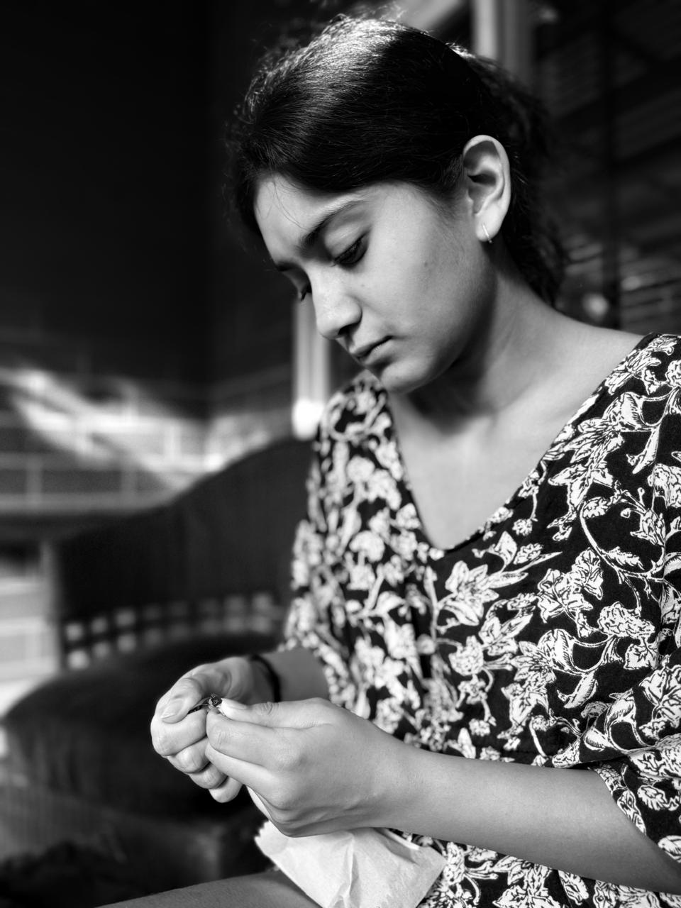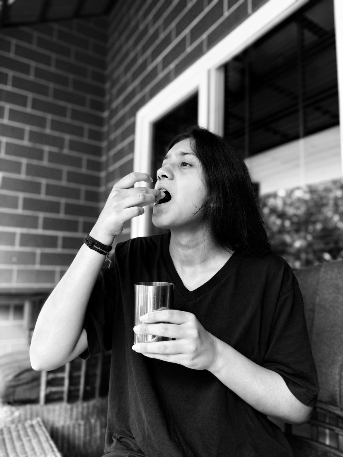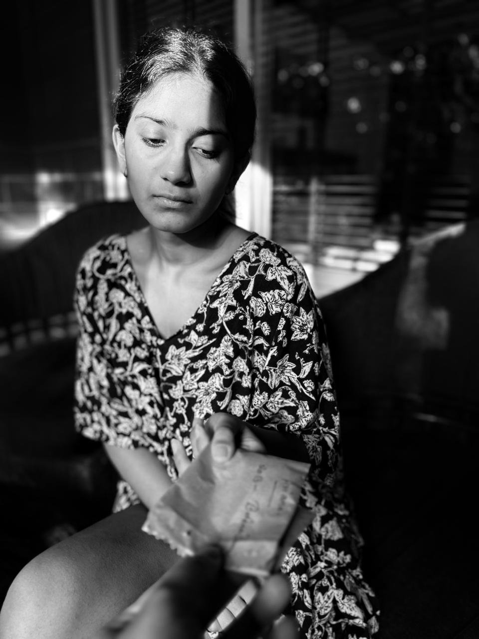 This reimagined narrative extends into the portraits of my sister. In several frames, her expression appears distant and fatigued, suggesting emotional withdrawal and loss of vitality. These visual cues are deliberately used to imply the imagined side effects of the “drug”—not restoration, but gradual depletion. Even the act of receiving the medicine packet takes on a darker tone, conveying hesitation and quiet distress rather than care. The series concludes with a close-up of the medicine packet bearing her name and the instruction “Before Breakfast.” This final image functions as a chilling endpoint, implying routine administration and personal surveillance. While each packet is individually labelled, the uniformity of the process suggests a system of quiet control, where individuality is acknowledged only to enforce conformity. Through this photo series, I aim to demonstrate how photographic truth can be easily reshaped and misrepresented. By altering context and narrative framing, a benign and therapeutic process can be recast as something unsettling and sinister—revealing the fragile boundary between documentation and deception.