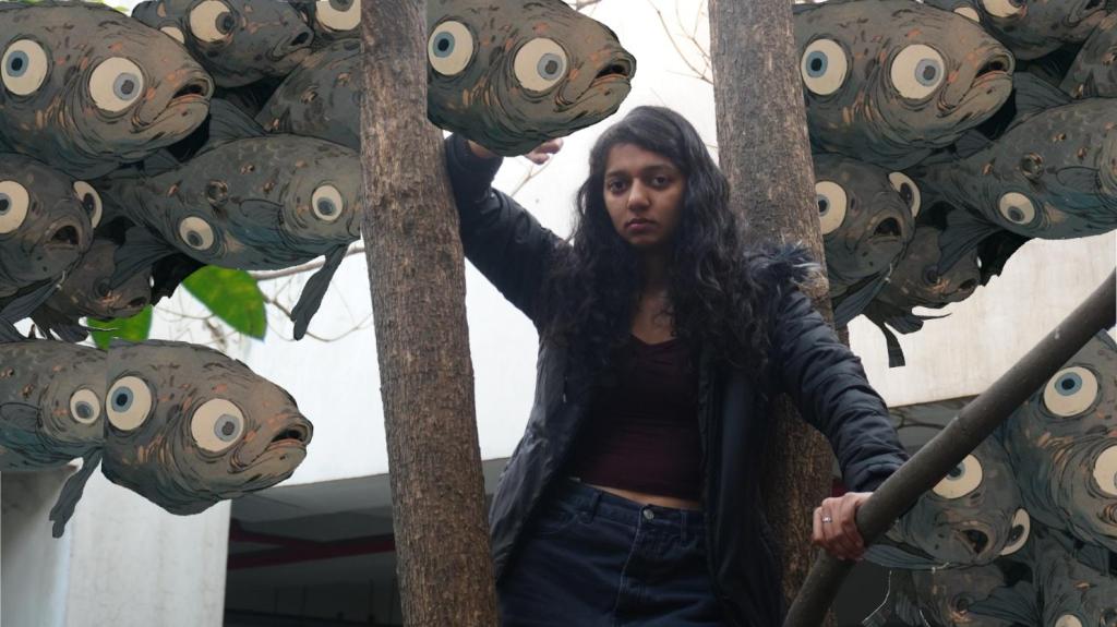 Instead of photographing many people, I follow one character through ordinary spaces: hostel room, park, campus corners, staircase. Onto these familiar scenes I have introduced objects that denote the different things we put on and take off every day mentally. Fish, eyes, crowns, childhood fragments, cultural headgear, bottles and props appear and disappear around me. None of them are realistic in the usual sense, but all of them point to things we put on and take off in our heads every day.