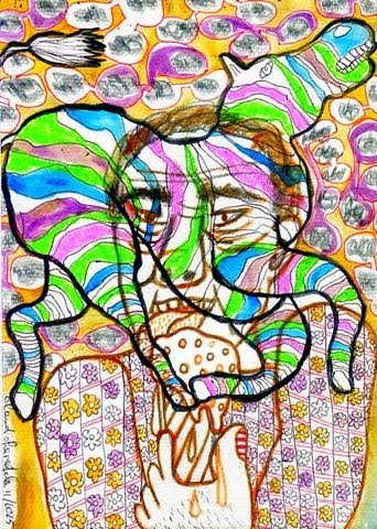 Claudio Parentela, born in 1962 in Catanzaro, Italy, where he continues to live and work, is a multifaceted contemporary artist whose practice spans illustration, painting, digital art, photography, collage, textile art, and cartooning. In addition to his visual work, he is also active as a freelance journalist, mail artist, and tarot practitioner. With a career extending over several decades, Parentela has been a consistent and dynamic presence in the international contemporary art scene. His work is characterised by a distinctive visual language that blends experimentation with diverse media, often exploring surreal, symbolic, and expressive forms. Through his wide-ranging artistic pursuits, he continues to engage with global creative networks, contributing to exhibitions, publications, and collaborative projects across disciplines.